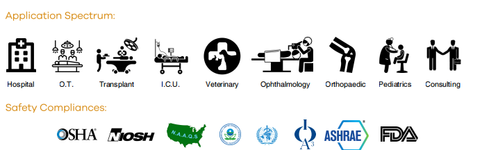 More than air-born atmospheric contaminates,hospitals have hidden surfaces inaccessible for conventional cleaning.Inside surgical equipment,under the bed, behind furniture, walls,ceilings,AC ducts,and light fixtures are usually impossible to clean. These surfaces are the source of biofilm formation. Biofilms are the protective layer underneath which bacteria and viruses hide and multiply.